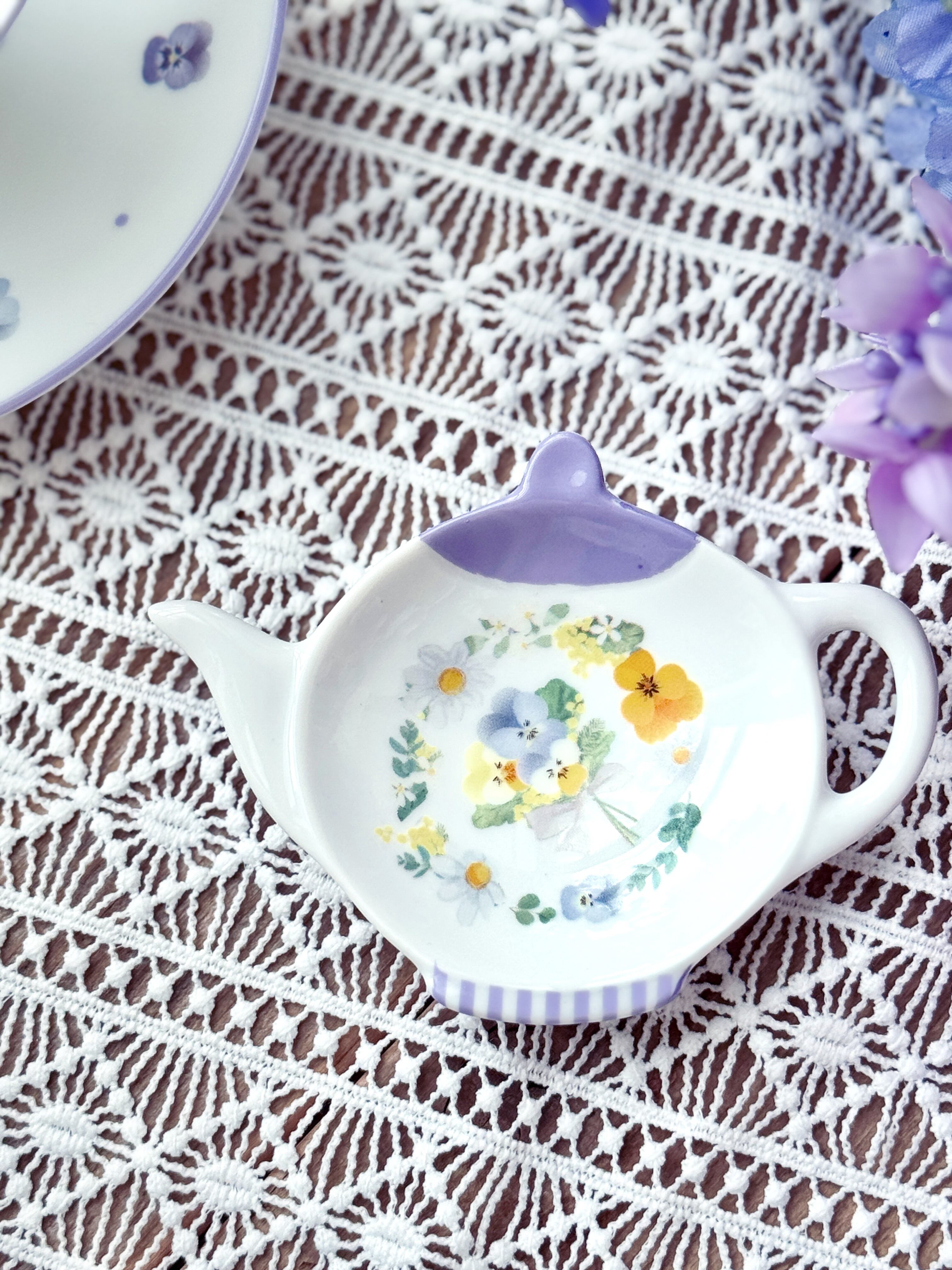 インスタでも大人気だった、北欧風フローラルパンジーリース転写紙のお見本ティーバッグレストです。